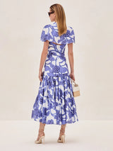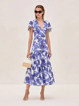 The Avanna Dress is a perfect blend of timeless charm and modern flair. Featuring a vibrant brown floral print, this wrap-style midi dress is designed to flatter with its adjustable tie waist and flowy tiered skirt. The short flutter sleeves and collared neckline add a polished yet feminine touch.