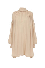 Chloé's bell sleeve dress perfectly encapsulates the label's modern boho mood. It's made from fluttery silk-blend jacquard and has long ties at the collar that you can knot into a bow at the front or back, or leave to drape loosely.