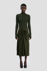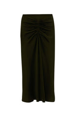 The Bella skirt is an extension of the brands celebrated gathered waist styles. Crafted in Portugal from a acetate and viscose blend satin, the midi length style features flattering ruching at the waist. For the complete look, style it back with the coordinating Bella top.