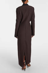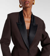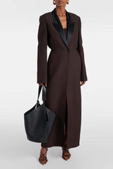 The Bellow coat from Khaite has been designed with oversized shoulders and a cinched waist for dramatic effect. It has satin-trimmed peak lapels, chest patch pocket, two front jetted pockets and a central rear vent.