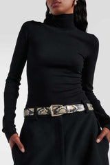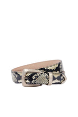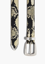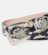 This embossed calfskin belt is as versatile as it is refined, with jewelry-like hardware crafted in Italy of palladium-plated brass.