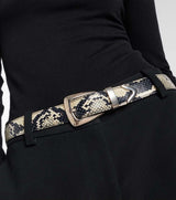- Python-embossed calfskin (100% calfskin), palladium-plated brass