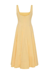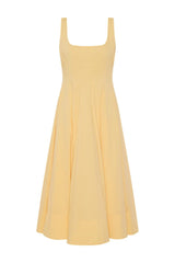 The Biarritz cotton dress features a plunge round neckline with a fitted waist accentuated by expertly tailored panels which flow to an exaggerated hem.