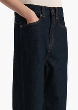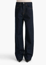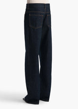 Designed to sit low on the hip, this relaxed silhouette combines classic five-pocket denim detailing with a dropped rise. Finished by hand.