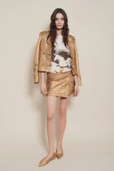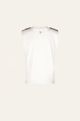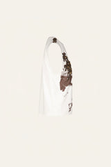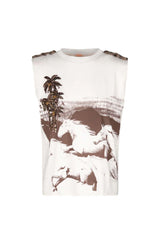 A cotton tank with a horse landscape motif and hand-applied beaded palm embellishments at the shoulders. Its sculpted shape makes it a standout base-wear it with tailored trousers or sharp outerwear for contrast.