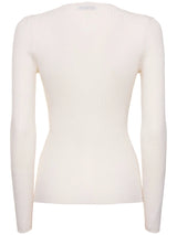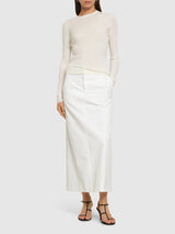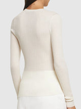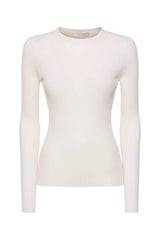 The Browning Crew Neck Sweater in fine rib cashmere silk yarn. This slim, flattering silhouette elongates the form to create the perfect layering piece.