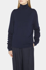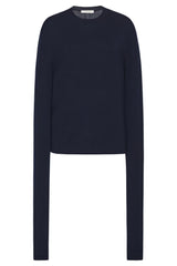 Crewneck sweater in fine wool jersey with exaggerated long sleeves and signature centre back detail.