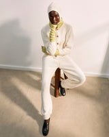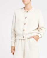 Hand-painted porcelain gold buttons with the Barrie logo contrast with the delicate ivory of the autumn-winter collection. It can be worn as a total look with the matching trousers.