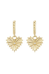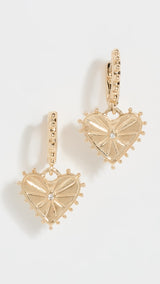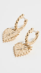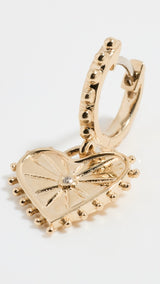 Marlo Laz’s heart earrings celebrate the notion of 'Agape', which is a Greek word referring to the most important kind of love - a sense of care and respect for other people. These earrings are handcrafted from 14-karat gold heart shaped charms, each set with a surprise diamond. They dangle from our bespoke 10mm hoop with G-H colour White diamonds.