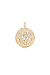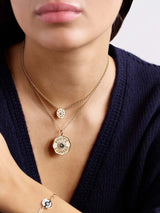For all our fellow travellers on this journey of life. A reminder to keep moving and evolving, our En Route necklace is about moving forward and not looking back. It symbolizes being En Route to a better self and a better world. This Wee En Route Necklace features White Diamond surrounded by two smaller diamonds. The Diamond illuminates its wearer, enhancing inner vision and opening the mind to new possibilities. It is the ultimate gemstone of strength and brilliance.