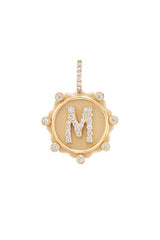 Marlo Laz's 'Southwestern' collection was inspired by a trip through New Mexico. These alphabet charms have been decorated with a gold embroidery of floral and paisley motifs.