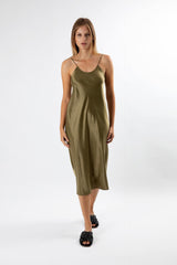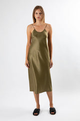 The Hawaii slip dress features a V-neckline and adjustable spaghetti straps that meet a bias cut to fall beautifully against the body.