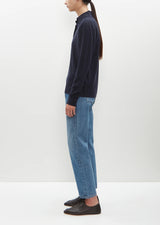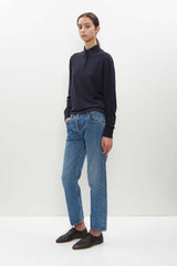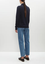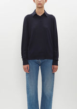 Long-sleeved polo top in fine wool jersey with 3-button collar and lightly sheer finish.