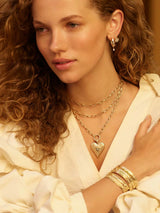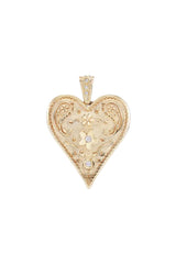 Marlo Laz's 'Southwestern' collection was inspired by a trip through New Mexico. This heart pendant takes cues from a classic locket, carved heart-shaped pendant. It's cast from 14-karat gold and studded with twinkling diamonds.