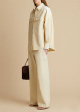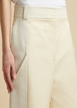 Khaite's Fall/Winter collection proposes a personal wardrobe of nuance and strength through pieces like these Leon wide-leg pants crafted in dense Italian cotton woven from a very fine yarn for a clean, compact construction. The elongated silhouette is refined by tonal accents at the oversized side slip pockets.