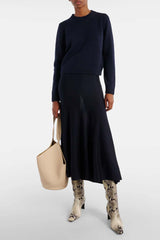The Leta sweater was designed to drape and hang with a "more fluid character". It's knitted in a slightly loose, cropped shape so it perfectly meets high-waist pants and jeans.