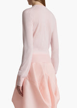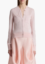 A featherweight cardigan in cashmere of the finest gauge. With patch pockets, fine ribbing, and tortoiseshell buttons concealed by placket.