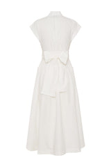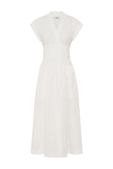 The London Wrap Dress is a mid-length wrap dress featuring a V-neckline and two side pockets. Ties at the front.