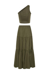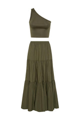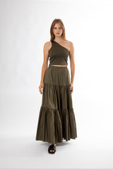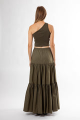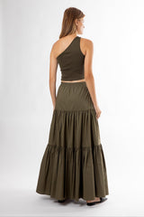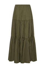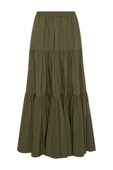 The Capri Maxi Tiered Skirt is made from lightweight cotton that falls to the ankle featuring two side pockets.