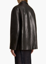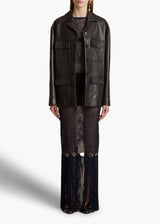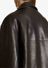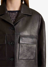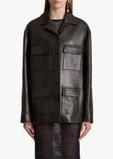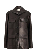 A sharpened safari jacket in supple lambskin. With notched lapels, yoked front and back, four patch pockets, and horn buttons. Lined in silky twill.