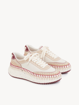 Crafted from a mix of smooth and suede cowhide, these Nama sneakers are set on an iconic, lightweight and ultra-comfortable recycled sole with a speckled effect. They are finished with immaculate blanket stitching which takes 4.5 hours to complete by hand. Chloé logo embroidery signs the back and tongue.