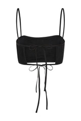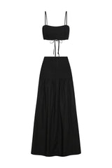 The Nice crop top features pin tucks across the top with spaghetti straps and a cut out back with ties. Pair it with the matching Provence skirt to get the head to toe look.