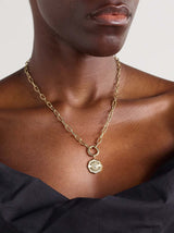 Marlo Laz's 'Coin' charm depicts the French phrase Porte Bonheur, which translates to 'Lucky Charm' - wear it as a symbol of good fortune. It's handcrafted from 14-karat gold and centered with 0.15-carats of diamonds. We think it would make such a thoughtful gift.