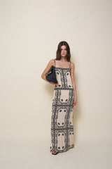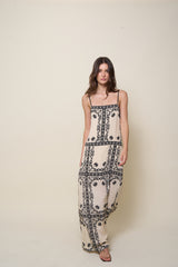 A sleeveless maxi dress in 100% silk, featuring a square neckline and a relaxed, loose fit for effortless elegance. Pair with the matching shirt for a complete, coordinated look.