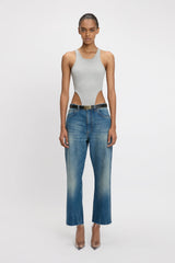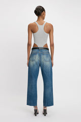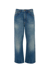 A vintage mid-blue wash imbues the Relaxed Curved Jean with an insouciance that is sexy and modern. Cut from 100% cotton with a mid-rise waist, ankle length and straight leg, it has a traditional five-pocket design, branded denim shank button, branded rivets and branded leather patch.