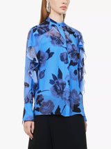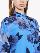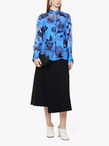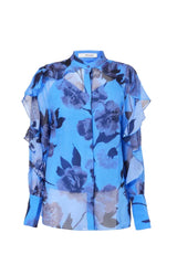Crafted from a silk and featuring an all-over painterly floral print, this button-down blouse from Erdem has a band collar and is finished with soft ruffles down the sleeves.
