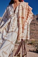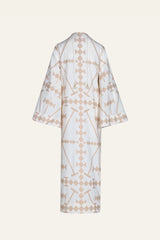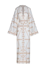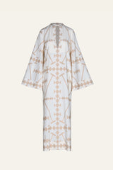 A breezy embroidered cotton tunic with wide sleeves and a relaxed silhouette. Effortless and airy, perfect for layering over swimwear or styling with sandals for a beachside look.