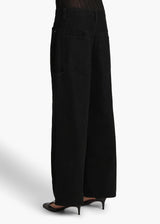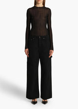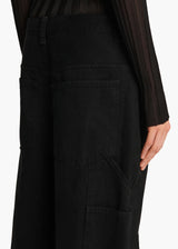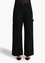 A refined cargo jean, this lower-rise silhouette combines a full leg and utility details with an integrated waistband for a sleeker, softer look. Antiqued buttons.