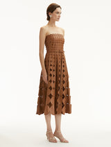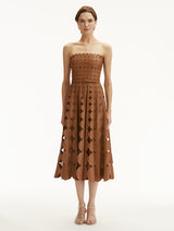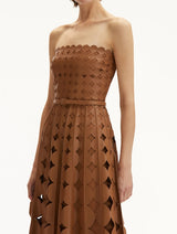 Playful and geometric, this classic A-line silhouette is crafted from supple lambskin leather and elevated with diamond and circle cutouts.