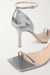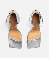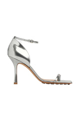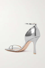 Bottega Veneta's 'Stretch' sandals are made from lustrous metallic leather that'll go with nearly any cocktail dress or gown. They're designed in a signature squared shape and have slim straps, including one that separates the toes. The stiletto heel adds 90mm of lift.