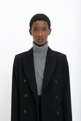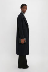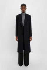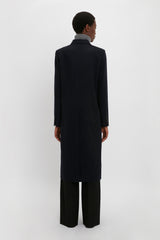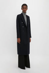 This double-breasted overcoat offers a confident reimagining of traditional masculine tailoring. Crafted in a luxurious wool-cashmere blend and presented in a deep shade of blue, the Tailored Slim Coat has a longline cut for a flattering and elongating silhouette. Flap pockets at either side and front welt pockets complete the look.