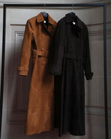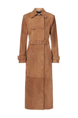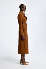 Nour Hammour's 'Tate' trench coat is handcrafted from suede in a warm 'Caramel' colour. Designed with a double-breasted profile, it has wide notch lapels and a buckled belt and cuffs to cinch the shape. Wear yours as part of a tonal outfit.