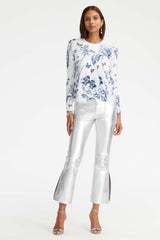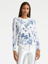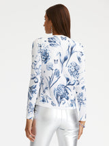 Oscar de la Renta's toile print cardigan features blooming florals and butterflies. Pair over the matching dress.