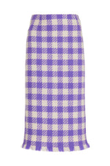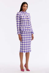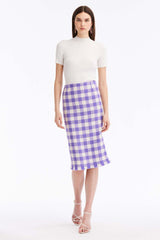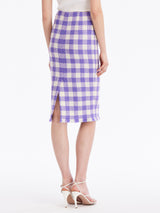 Oscar de la Renta's twill check tweed skirt features a raw hem and back split, pair with the matching jacket for a head to toe look.