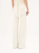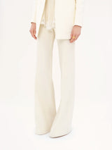 High-rise flared pants in lower-impact wool grain de poudre with pressed front creases.