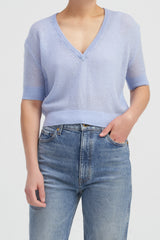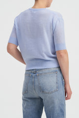The Zermatt short sleeve cashmere/wool blend sweater is the sort of relaxed yet feminine design that you can toss on with jeans or dress up back with formal trousers.