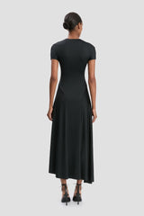 A distinctive take on the classic black dress, the Zipped Front Midi Dress has a fitted bodice with panelling and fluid skirt for a figure-flattering silhouette. Crafted from a comfortable stretch jersey, it has a concealed front zip and playful asymmetric hemline.