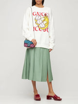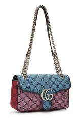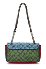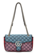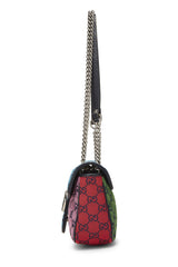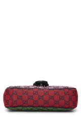 Crafted from a cotton canvas monogramed with the brands GG pattern, this handbag features colour blocking panels that exudes fun.