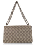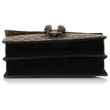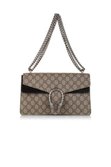 The antiqued silver-tone tiger clasp on Gucci's 'Dionysus' bag is inspired by Greek mythology. This shoulder style is made from monogrammed coated-canvas trimmed with suede and has a sliding chain strap to alter how you carry it.