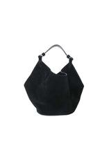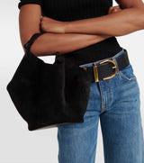 Inspired by the fluidity of a scarf, KHAITE's Lotus Mini Suede Bag in an icon of the brands collection. The unstructured, sculptural shape of this mini version of the beloved piece has been made in Italy from black suede and left unlined for lightness. It has a round base and slim top handle that fits all of your daily essentials with ease.