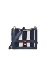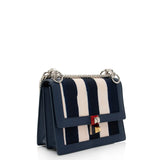 Canvas Calfskin Striped Small Kan I Shoulder Bag Midnight Blue.