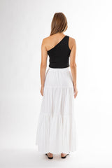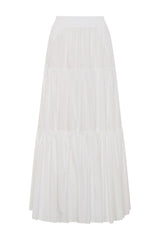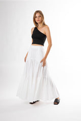 The Capri Maxi Tiered Skirt is made from lightweight cotton that falls to the ankle featuring two side pockets.