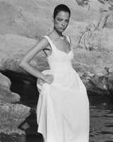 - Cristina wears the Bralette Midi Dress in White in a size 2.