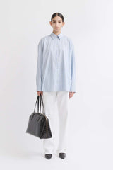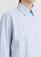 The Classic shirt from the TOTEME Garderob curation reworked in structured cotton with fine, blue-hued stripes channelling a preppy mood.