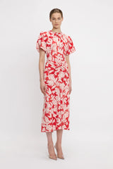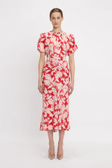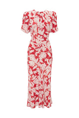 The Gathered Waist Midi Dress exudes an effortless sophistication. Presented in an exclusive Blush Flowers print for SS25, it has a waist-defining silhouette with flattering pleat detail to the front. At the back, a V-shaped seam at the waist is mirrored by a subtle V neckline and longer-length hemline. Topstitch detailing reflects the house’s love of discreet design details.