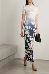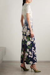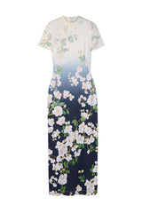 Oscar de la Renta describes this dress as a "poetic display of nature's beauty". Made in Italy from smooth stretch-jersey, it's printed with cherry blossoms against an ombré backdrop that transitions from cream into midnight-blue.
